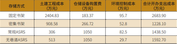综上,100万册藏量四种不同存储方式开办支出成本估算结果,参见表3。